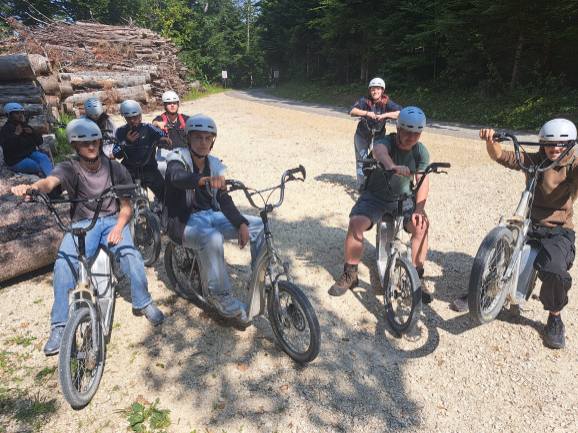 Der Mittwoch startete mit dem Gottesdienst unserer Seelsorgerin Margrit Muoth. Nach dem Besuch auf dem Tierfriedhof, ging es dann auf zwei Rädern rasant von Wasserfallen mit dem Trotti bergab.