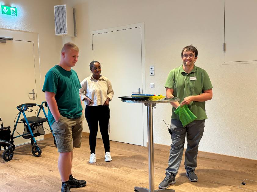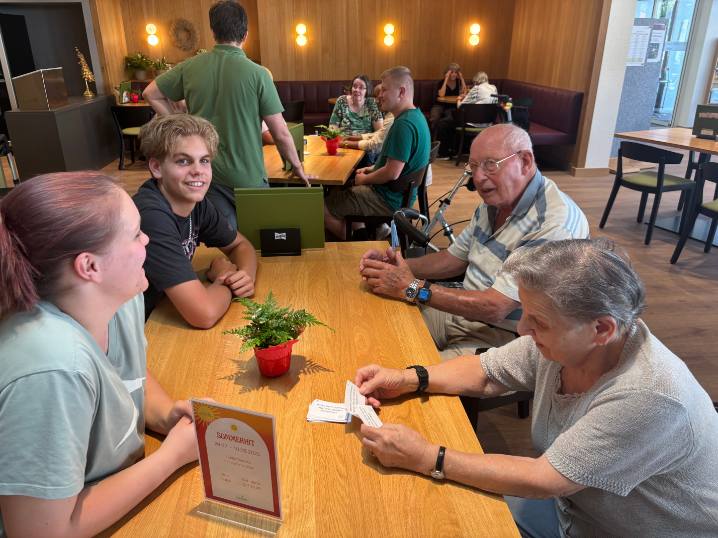 Im Rahmen der Einführungswoche der neuen Lernenden, durften die Lernenden den Sommerabend mit einem Lotto leiten. Alessia Figlioli übernahm die Rolle des Speakers, während die Lernenden der Pflege und Betreuung die Bewohnenden beim Suchen und Abdecken der Zahlen unterstützen.