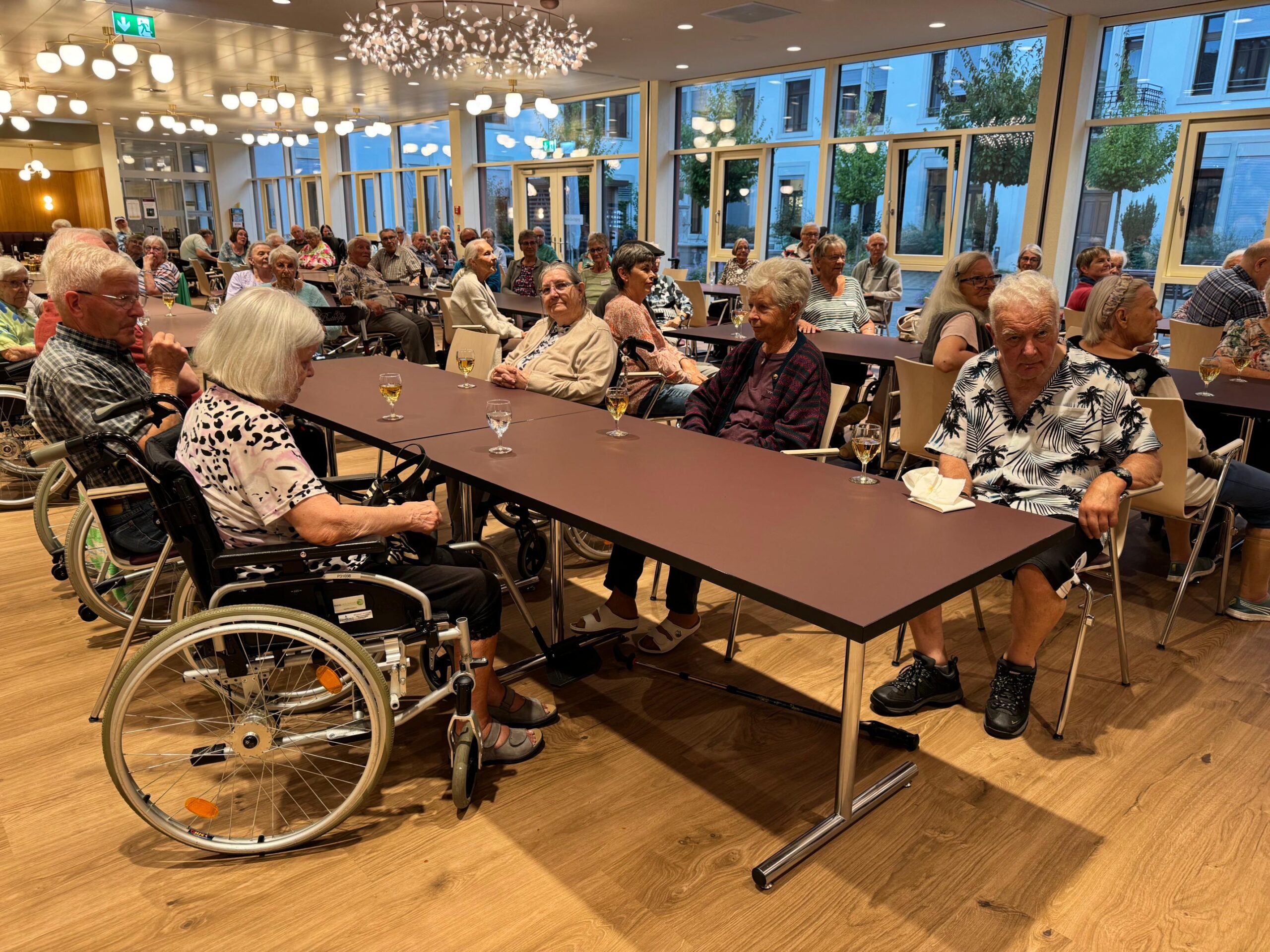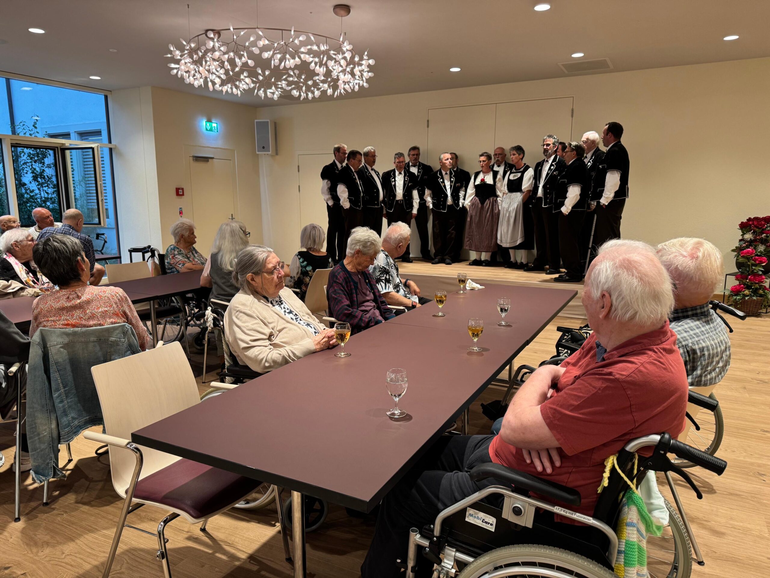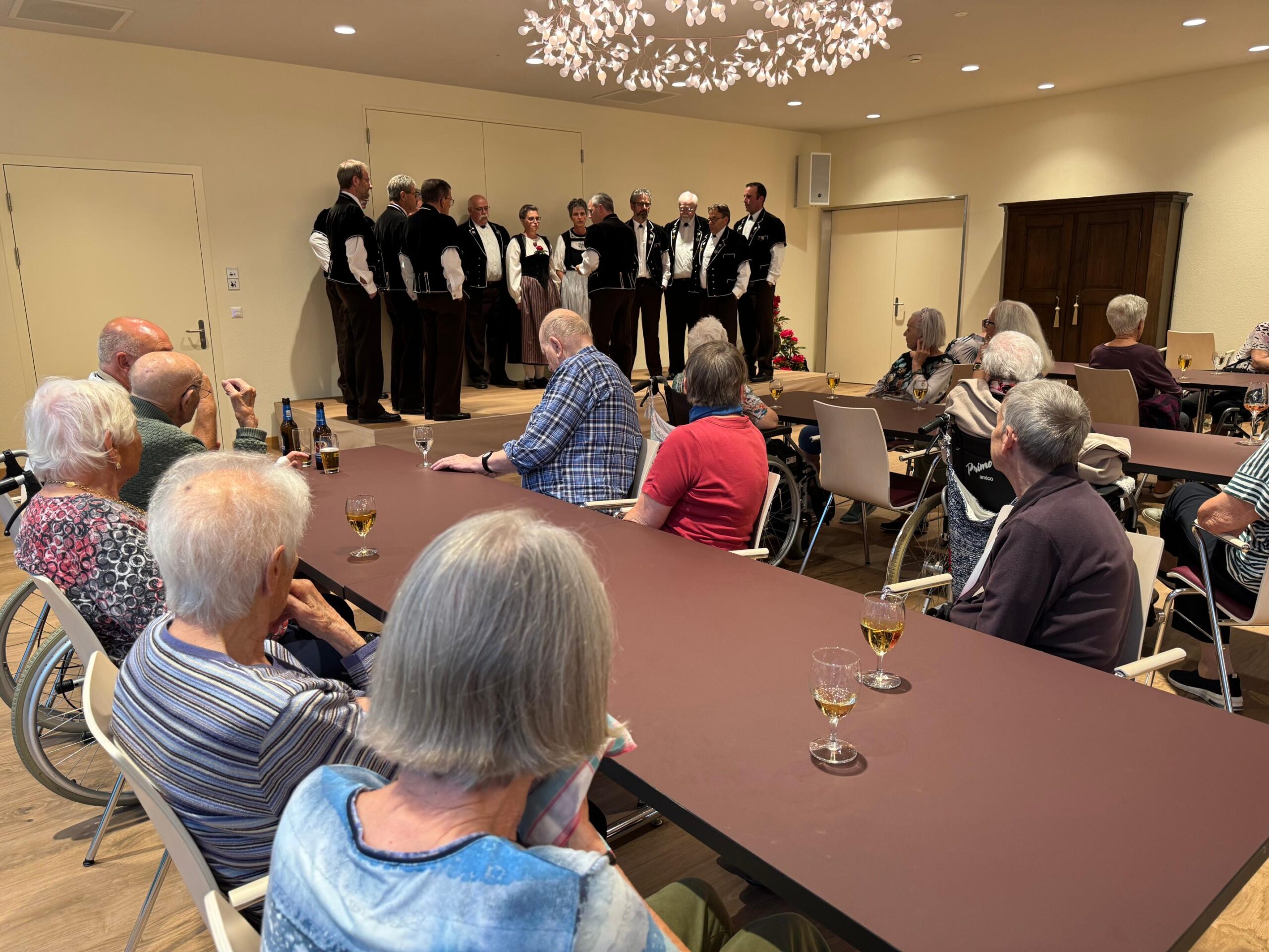 Unter der Leitung von Michael Frei fand ein geselliger Sommerabend im Festsaal statt. Das Jodlerdoppelquartett Rothrist begeisterte die Anwesenden mit einem gewaltigen, harmonischen Jodelstrauss. Die Beohnenden wurden von freiwilligen Helferinnen und Helfern begleitet und unterstützt. Kulinarisch verwöhnt wurden alle mit leckeren Schinkengipfeli. Ein Abend, der half, die Zeit zu vergessen und dem Alltag zu entfliehen. Solche Momente sind kostbar und das schätzen wir alle sehr.