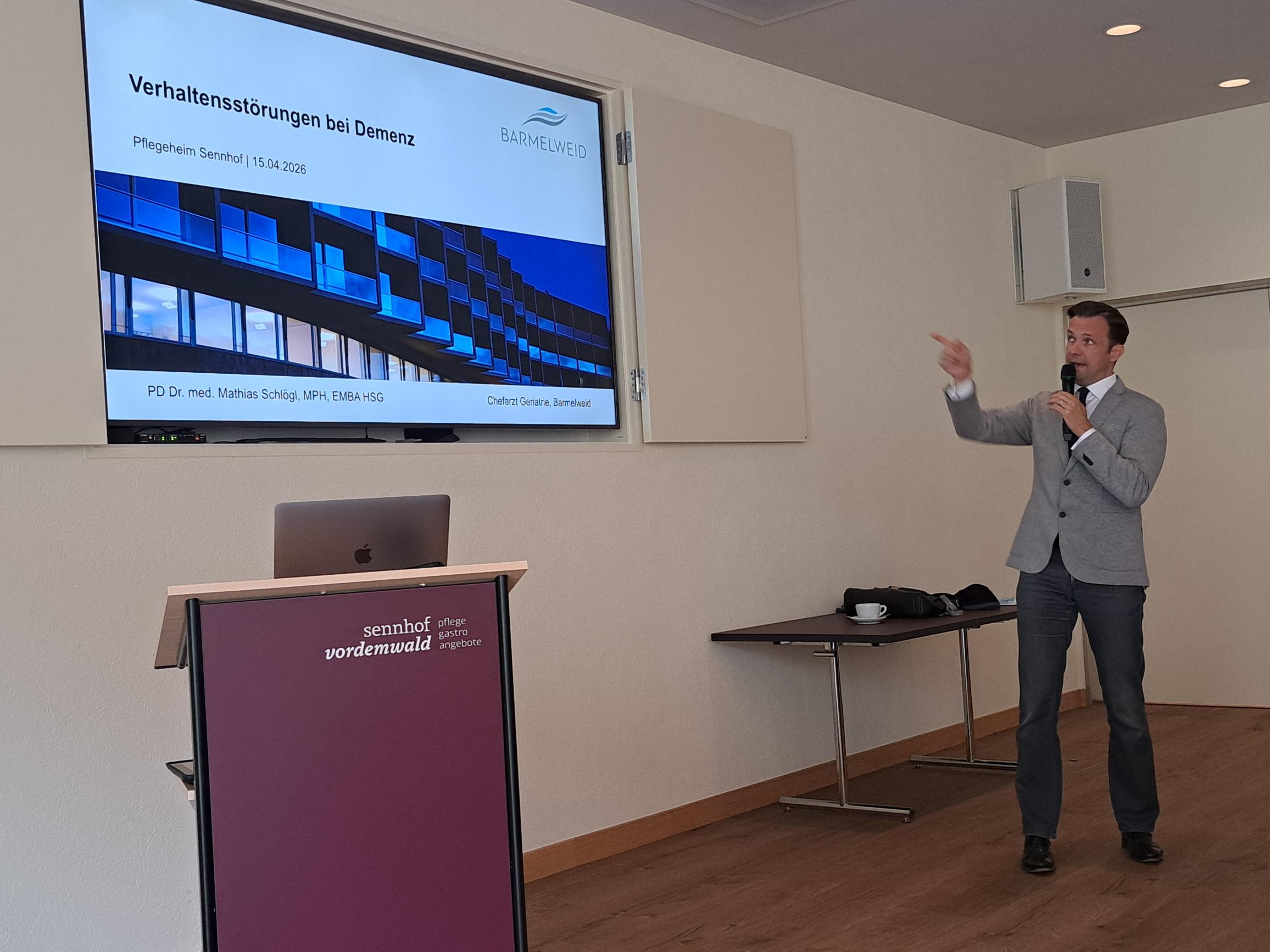 PD Dr. med. Mathias Schlögl, MPH, EMBA HSG Chefarzt Geriatrie Barmelweid referierte zum herausfordernden Thema «Verhaltensstörungen bei Demenz».